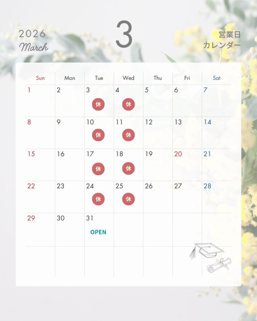 ※31日は月最終日のため通常営業いたします。
